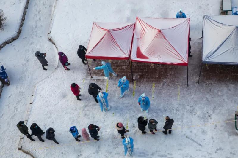 15日,吉林省吉林市某住宅小区内开展核酸检测。