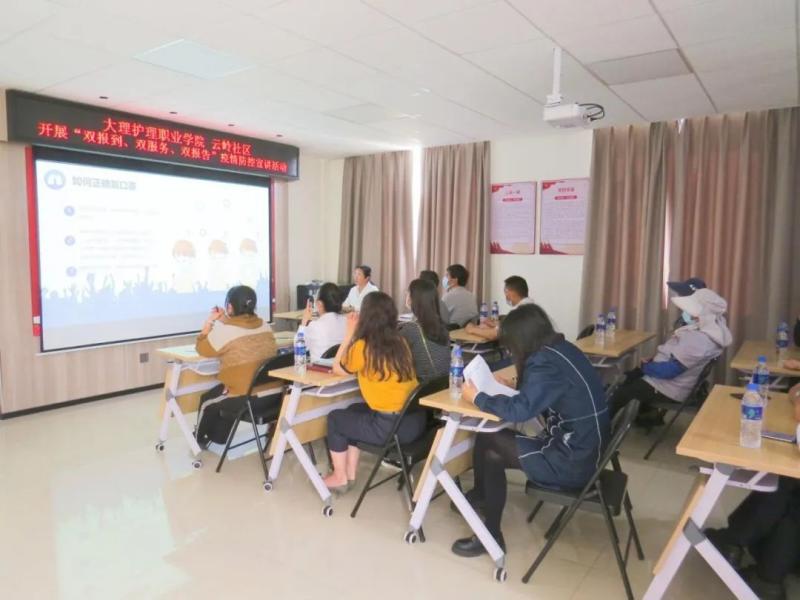 为切实贯彻好中央组织部《关于深化城市基层党建引领基层治理的若干准则(实行)》和省州党委推进作风革命、效能革命的有关部署,引导学校党组织和在职党员“工作在单位、活动在社区、奉献双岗位”,建立“我为群众办实事”实践活动长效机制,与社区共同筑牢疫情防控网,进一步加强新冠疫情防控知识教育,4月27日学校党委专职副书记字利鹏带领学院党委组织部、护理系党支部到云岭社区开展“双报到双服务双报告”疫情防控宣讲活动。