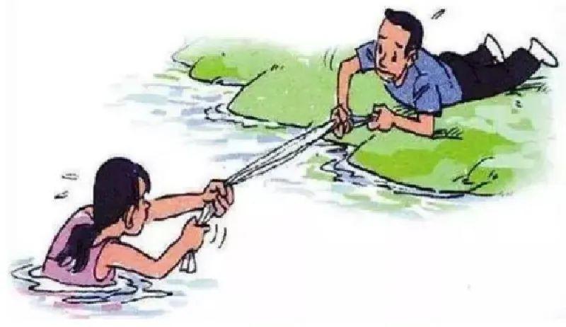 2.发现溺水者后,可充分利用现场器材,如绳、竿、木板、救生圈等救人。也可以将衣服连在一起当做绳索。