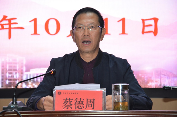 学校党委副书记、院长蔡德周代表学校领导班子作表态发言:一是坚决拥护和服从州委的决定,衷心感谢州委长期以来对学校发展的关心支持;二是做到对党忠诚,旗帜鲜明讲政治,坚持党委领导下的校长负责制,进一步加强和改进领导班子作风建设,充分发挥学校党委的领导核心作用,认真履行管党治党、办学治校主体责任;三是坚决做到履职尽责、勇于担当提精神,以更高的站位、更宽的眼界、更深的思考,找准问题、抓住关键、精准发力,切实落实“学做”活动36项重点工作任务,积极稳妥推进学校改革发展,为创建省域“双高”院校,升格大理卫生职业大学奋力拼搏;四是坚决做到识大体、顾大局,自觉维护班子团结,同心同德,同心同向,在思想上合拍,在工作上合力,团结带领全校师生以更实的举措,更强的力度,更新的要求,更高的效率,更严的标准,努力创造学校崭新的业绩。