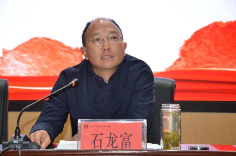 会议要求,全体教职工要紧密地团结在以习近平同志为核心的党中央周围,全面贯彻党的教育方针,践行社会主义核心价值观,不忘初心、牢记使命,为党育人、为国育才,把精力集中到学校发展建设的主旋律上,坚持一张蓝图绘到底,坚定不移朝着推进全面建成特色鲜明的医药卫生职业院校,并向省域“双高”、职业本科大学目标奋勇前进,为发展医学教育事业、护卫人类生命健康,为实现大理州教育现代化、建设云南省高等教育次中心作出新的更大贡献!