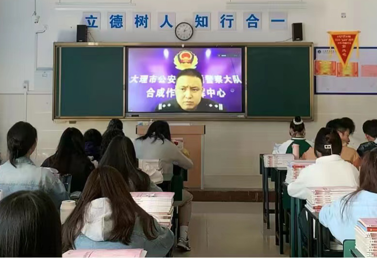 柯强警官结合大理州内校园周边近年来发生的交通事故典型案例和交通安全宣传片,以案说法,用浅显易懂的语言、幽默风趣的互动问答形式为学生们讲解交通安全知识点,从步行、骑车、乘车等各种日常出行方式需要注意的安全事项出发,生动形象地向同学们传授实用的交通安全知识;同时就如何安全过马路、如何安全乘车、常见交通标志标线、发生交通安全如何自救等,系统讲解了交通安全知识和注意事项,并积极倡导广大师生自觉遵守道路交通安全法律法规,做到文明交通、安全出行。