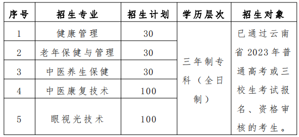 注:招生专业及计划以云南省教育厅核准公布为准。