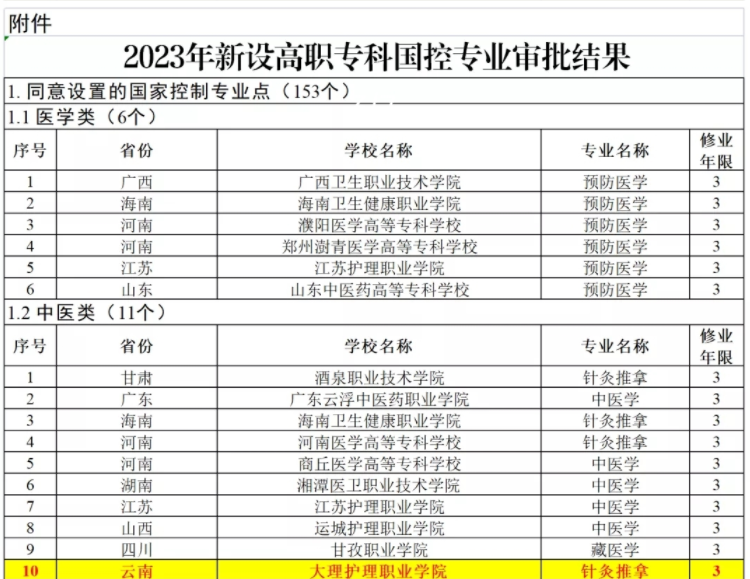 我部共受理2023年拟新设国控专业点申请328个,经会同公安部、司法部、国家卫生健康委、国家中医药管理局等行业主管部门审核,同意设置专业点153个,不同意设置专业点173个,需实地评估专业点2个(评估结果另行通知,合格后方可招生),审批结果可在教育部政务服务管理平台(网址:http://gz.moe.gov.cn)查询。审批同意设置的国控专业将导入全国职业院校专业设置管理与公共信息服务平台,自2023年起可以招生。