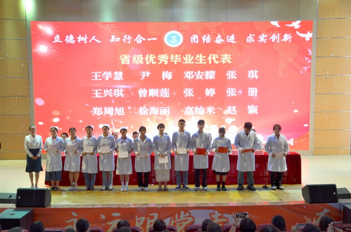 学校领导为毕业生代表颁发毕业证书,为“省级优秀毕业生”和“省级优秀班级体”班主任颁发荣誉证书。