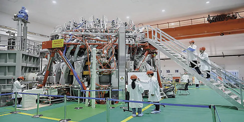 “人造太阳”是建一个装置,利用核聚变原理,持续可控地输出能量。由于它产生能量的原理与太阳相似,被形象地称为“人造太阳”。2020年12月,中核集团自主设计、建造的新一代“人造太阳”装置中国环流三号,建成并实现首次放电。2022年10月19日,新一代“人造太阳”等离子体电流突破100万安培,创造了中国可控核聚变装置运行新纪录,标志着我国核聚变研发距离聚变点火迈进重要一步。“人造太阳”一旦实现商用化、小型化,就可被放置到太空、卫星、电动车等场景之中,成为低成本的能源来源。