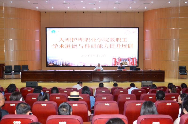 6月12日,学校科研部在瞻远楼四楼报告厅组织开展学术道德与科研能力提升培训讲座。校领导及全校专业技术人员参加培训。讲座由科研部主任马向尧主持。
