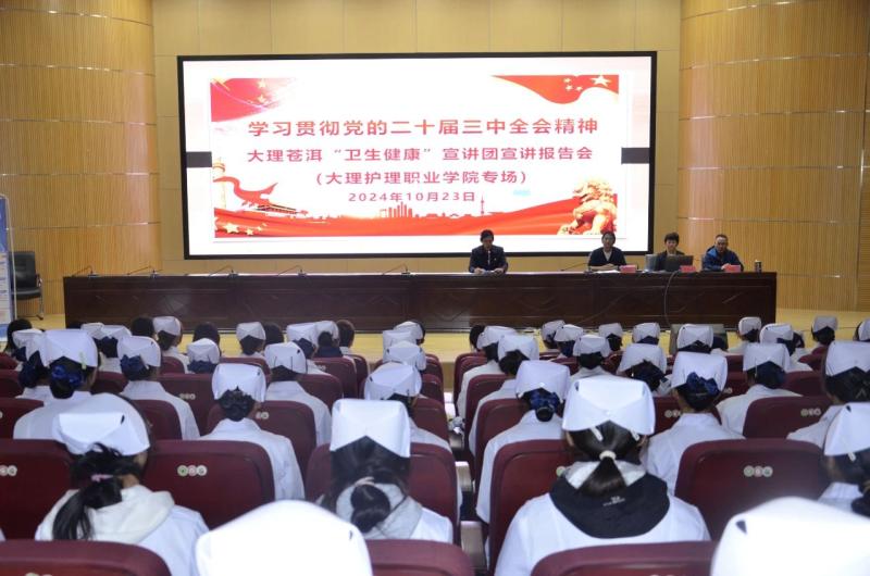 10月23日,大理州卫健委大理苍洱“卫生健康”宣讲团来开元开展健康宣教进校园活动,进一步学习宣传贯彻落实党的二十届三中全会精神,为广大师生开展艾滋病防治和心理健康教育科普宣讲。此次活动由学校教务科、学生科、护理系党支部承办。活动由大理州卫生健康委党建办二级主任科员尹定松主持,共计250余名师生参与活动。