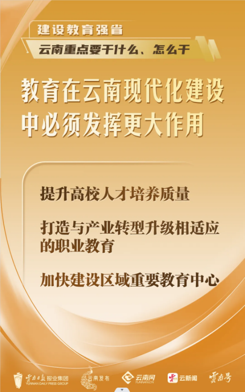 加快建设区域重要教育中心。吸引世界知名高校和特色学院来滇合作办学,大力培养复合型、国际化人才。持续打造“留学中国·学在云南”的品牌,在招生数量、培养质量上有明显提升;合作建设工程技术学院、“澜湄工坊”等。办好首批50所示范性国门学校。