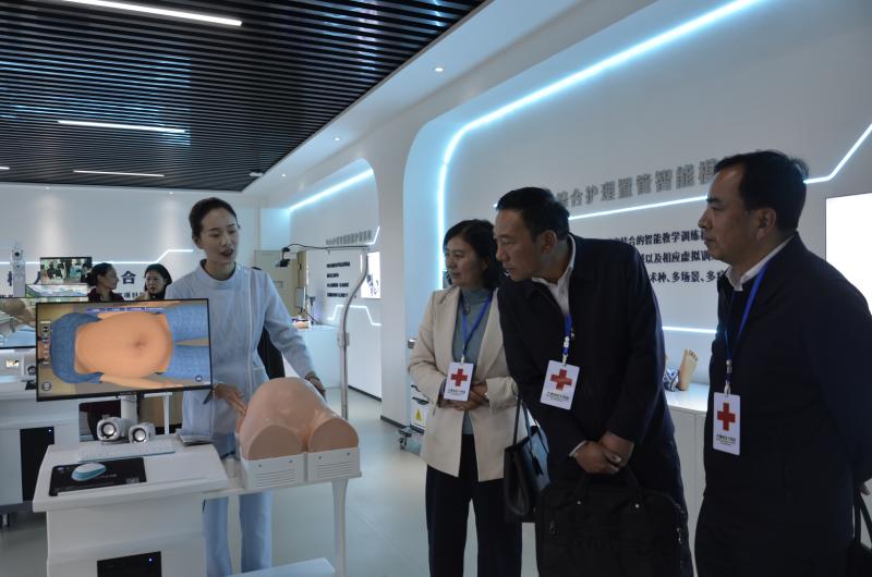 座谈会后,调研组一行实地参观了学校护理系实验实训中心,详细了解了学校红十字会工作的硬件设施建设和文化宣传阵地建设情况,并就进一步完善应急救护培训体系、加强红十字文化传播等方面提出了指导性意见和建议。