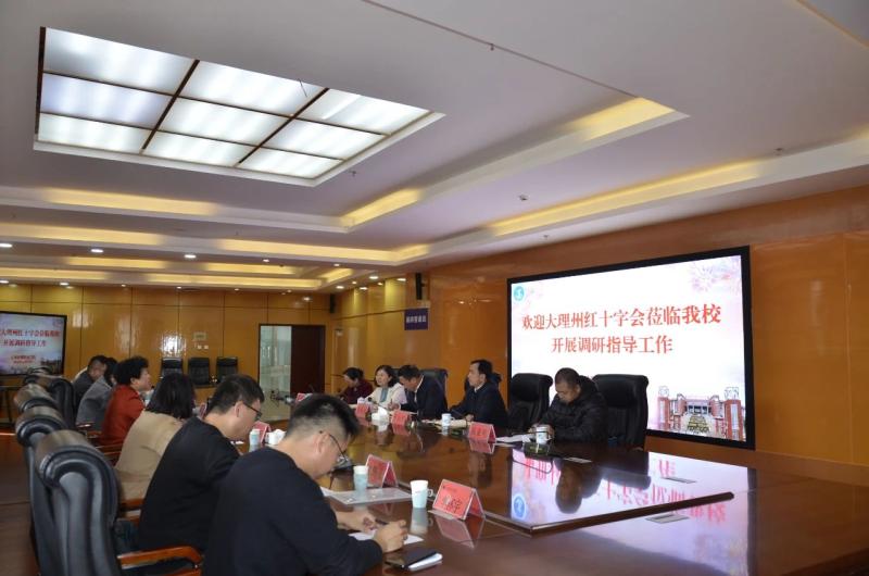 11月27日,大理州红十字会党组书记李福禧一行到开元调研。学校党委书记廖惠群,副院长、校红十字会会长李洁及校红十字会理事陪同调研。