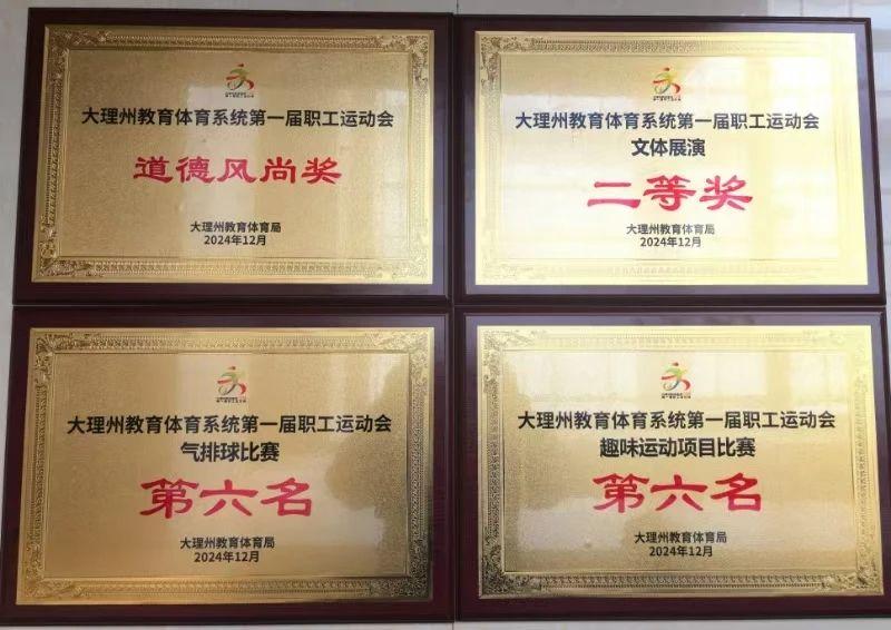 12月13日至20日,KY开元集团官网入口教职工代表队参加大理州教育体育系统第一届职工运动会,荣获“道德风尚奖”“文体展演二等奖”“气排球比赛第六名”“趣味运动项目比赛第六名”等优异成绩。开元教职工代表队由学校党政主要领导带队,45名教职工运动员组成,参加了男子篮球、气排球、趣味运动和八段锦文体展演等四个项目的比赛。