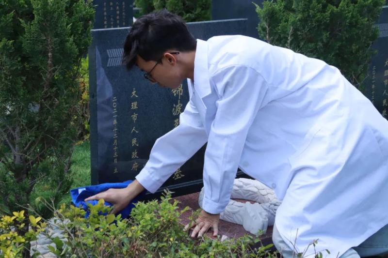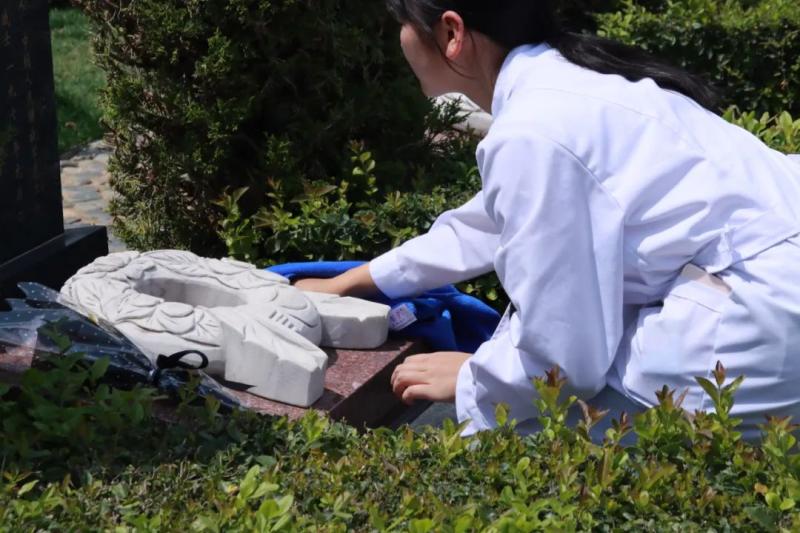 默哀毕,师生们带着满心的虔诚与敬意,有序地走近每一座烈士墓碑,用双手细心地擦拭着墓碑上的尘埃,每一个动作都那么轻柔,仿佛生怕惊扰了先烈们的安息。微风中,大家轻声细语,诉说着对英烈的敬仰与怀念,传递着后辈们无尽的感恩与追思。