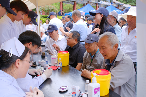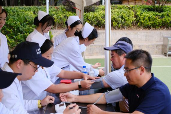护理系学子化身健康守护先锋,在实践服务中尽显专业本色。面对参与活动的居民,同学们手持血压计、血糖仪,从消毒准备到数据读取,每一个环节都细致入微,规范操作下的精准测量,展现出扎实的基础护理功底;心肺复苏技能展示区,他们模拟急救场景,凭借对按压深度、频率及通气节奏的完美把控,将教科书上的理论转化为争分夺秒的生命救援;创伤包扎实操环节,同学们迅速评估模拟伤员伤情,熟练运用绷带与三角巾,以标准化的止血、包扎、固定流程,诠释着未来医护人员的沉着与专业,赢得现场观众的频频称赞。