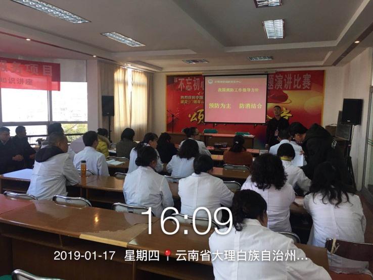 为进一步加强安全生产工作,增强职工消防安全意识,提高消防应急处置能力,根据《大理州卫计委 “安全生产月”活动实施方案》的安排部署, 1月17日,KY开元集团官网入口门诊部开展了一场消防安全知识讲座,讲座邀请了云南省消安消防普及中心的专家为我们讲授。
