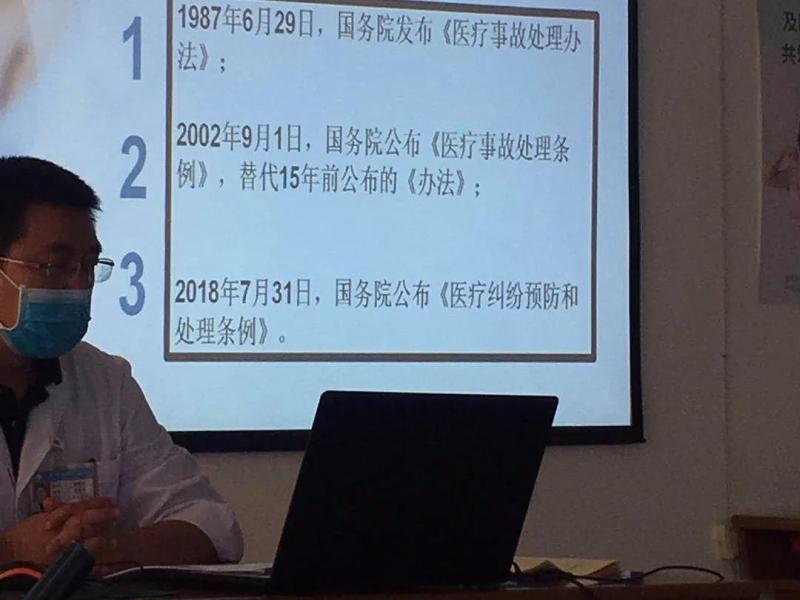 培训会上,党支部负责人廖建东带领大家学习了《医疗纠纷预防和处理条例》全文,并就医疗纠纷预防、医疗纠纷处理、法律责任作了生动详细的解读。