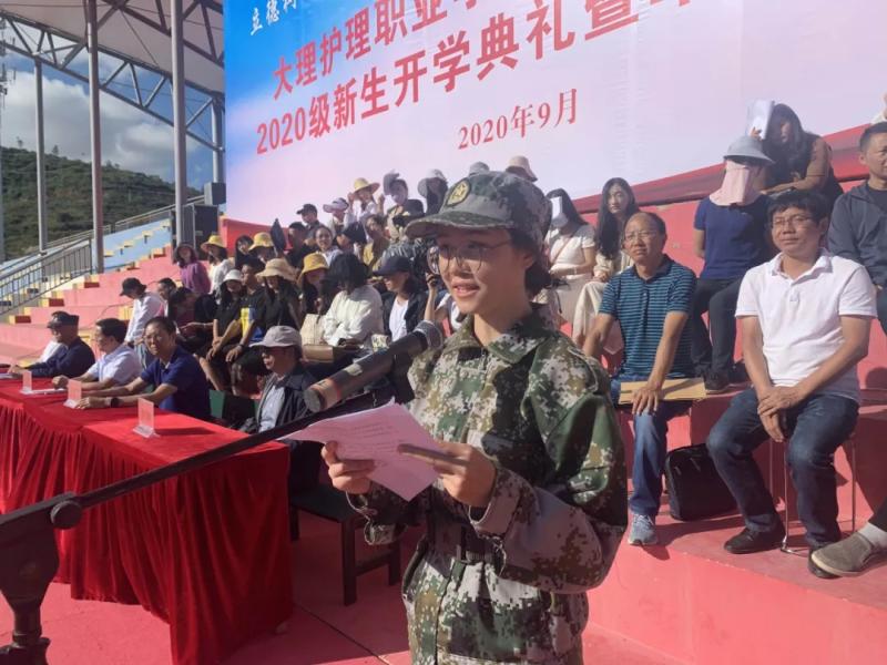 院党委副书记、院长蔡德周作开学典礼暨军训动员讲话。他代表学院全体教职员工对2020级1700名新同学的如期而至表示热烈欢迎!对承担此次军训工作的部队官兵表示衷心的感谢!并介绍了学院的发展历程等相关情况,同时对全体新生提出三点希望:一是梦想源于思而成于干。在求知的道路上博学之、审问之、善辩之、笃行之,努力使自己成长为一名善于思考和有精神追求的学生,让自己的青春梦想在中国特色社会主义伟大事业的建设中焕发出绚丽光彩;二是责任聚于心而成于行。要以立德成才为己任,用包容、友善、正直践行我们“立德树人、知行合一”的院训,要以求知为己任,为自己的头脑带来一次知识风暴的洗礼。要以诚信为己任,共筑诚实、互助、友爱的和谐家园;三是勤奋贵于行而成于恒。“纸上得来终觉浅,绝知此事要躬行”,同学们既要努力学习科学文化知识,也要积极投身社会实践,积极发挥00后大中专学生思想活跃、思维敏捷的优势,勇于创新、善于创新,正确评价自我,增强信心,把自己创新的思维付诸实践,收获成功。