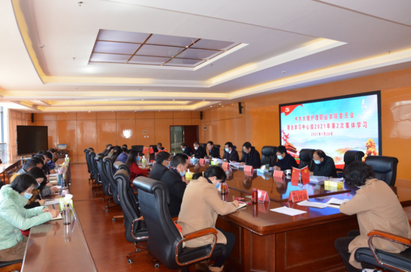 1月28日,学院党委理论学习中心组举行2021年第二次集体学习,紧紧围绕“认真学习贯彻习近平新时代中国特色社会主义思想,加强政治建设,提高政治能力,坚守人民情怀,夺取决胜全面建成小康社会、实现第一个百年奋斗目标的伟大胜利,开启全面建设社会主义现代化国家新征程”这一主题,开展专题学习研讨,巩固深化学习成果,为开好民主生活会打牢思想基础。党委书记王荣富主持集体学习并作总结讲话。