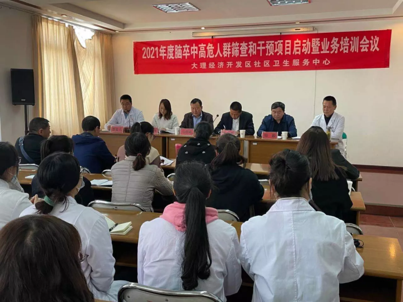为保质保量完成国家卫生健康委脑卒中防治工程委员会“2021年度脑卒中高危人群筛查和干预项目”工作,推动卒中防治工作的深入开展,3月11日下午,学院门诊部作为基层社区筛查和干预点举办了2021年度脑卒中高危人群筛查与干预项目启动会暨培训会议。学院门诊部马跃民主任及相关科室负责人,州医院马顺高副院长,市卫健局医政科李谷孝科长,大理市满江街道办事处社会事务办母治梅,州医院业务部邹毅、杨华伟、杨婷、张娅等专家参加了会议。