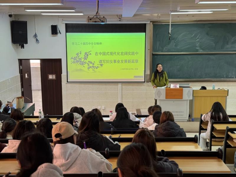 12月3日下午,学校妇联举办以“学习党的二十届四中全会精神,在中国式现代化宏阔实践中谱写妇女事业新篇章”为主题的专题讲座。深入学习贯彻党的二十届四中全会精神,切实把全校女大学生的思想和行动统一到党中央决策部署上来,凝聚巾帼智慧、汇聚巾帼力量,助力妇女事业在中国式现代化进程中高质量发展。妇联执委、马克思主义学院副教授柴薇主讲。