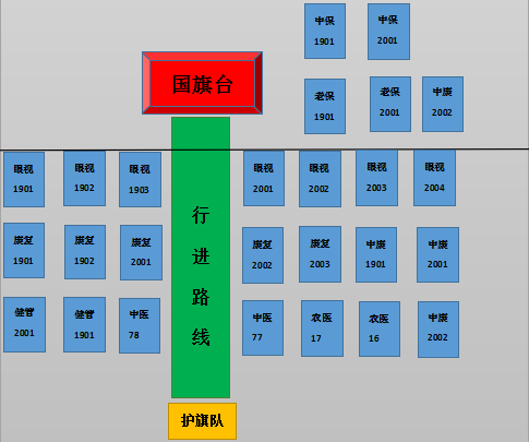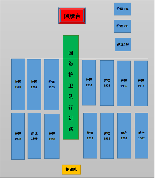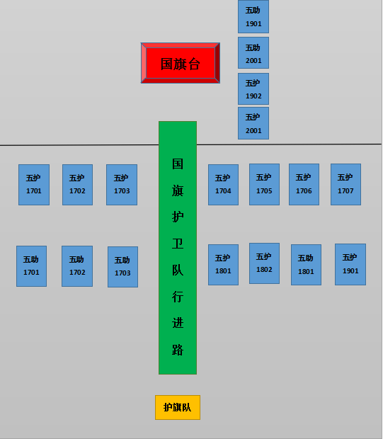 1、7:40前,参加升旗仪式所有人员规范着装入场,按规定要求整齐列队。
