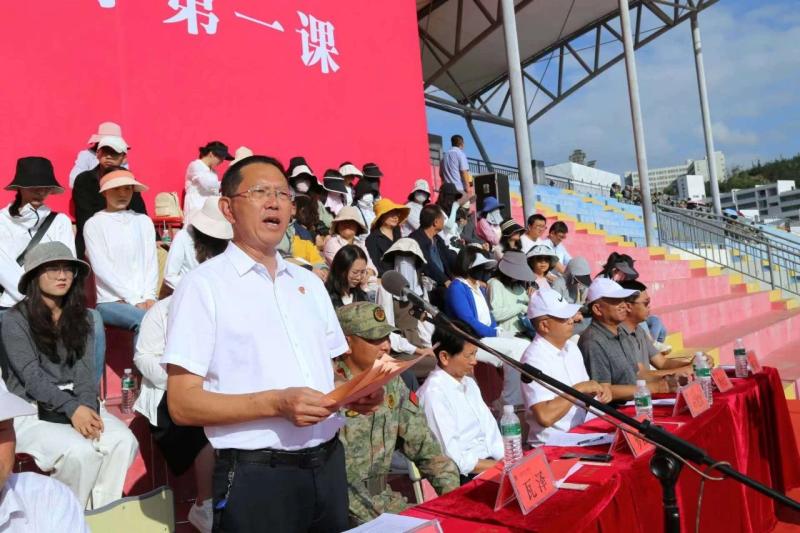 上午8:00,开学典礼军训结训仪式暨“开学第一课”在庄严的《中华人民共和国国歌》声中拉开了序幕。