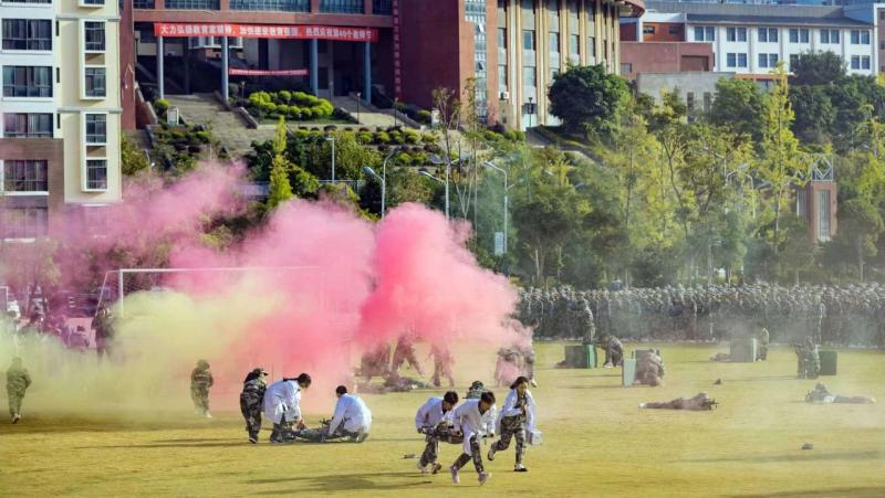 各个军训连队依次开展了队列、军姿、格斗术、战术等军事科目训练成果展示。参训新生们整齐的军容,饱满的精神,嘹亮的口号,矫健的步伐,整齐划一的动作,充分展现了此次军训取得的优异成绩。