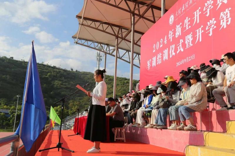 学校党委专职副书记字利鹏同志宣布2024年新生军训结训。