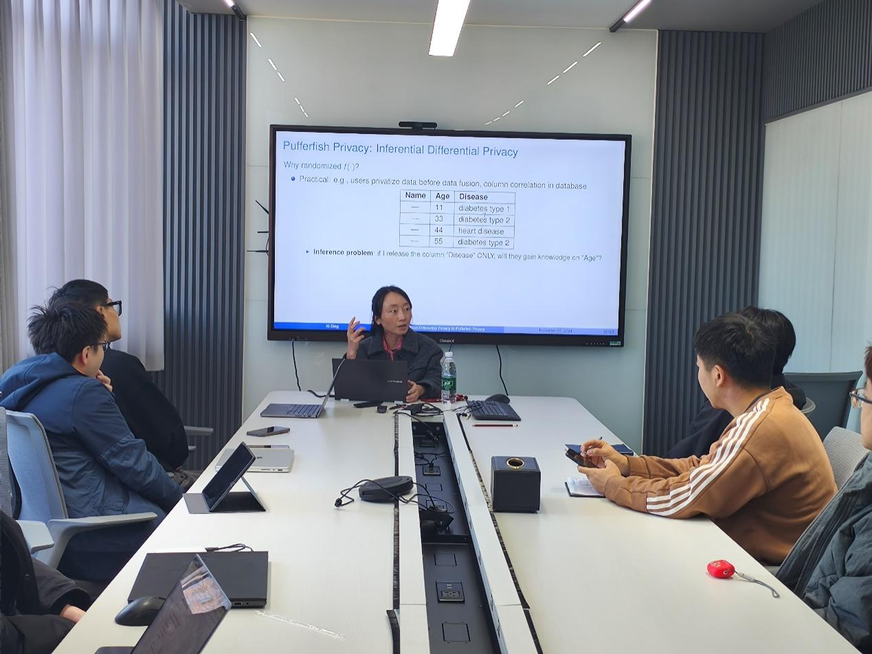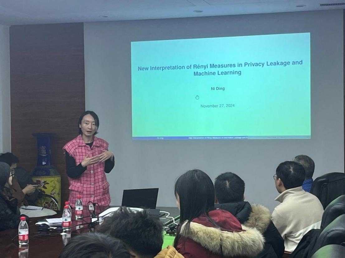 2024年11月27日,奥克兰大学丁妮博士应永利集团88304官网在线登录邀请,在中心教学楼举分别作题为“隐私泄露与机器学习中的Rényi度量新解释”、“通过Kantorovich最优传输计划实现ε-Pufferfish隐私”的学术讲座,,讲座分别由永利集团88304官网在线登录礼欣老师、胡晶晶老师主持,语言智能与社会计算研究所和网络攻防对抗研究所相关专业方向师生参加了讲座。