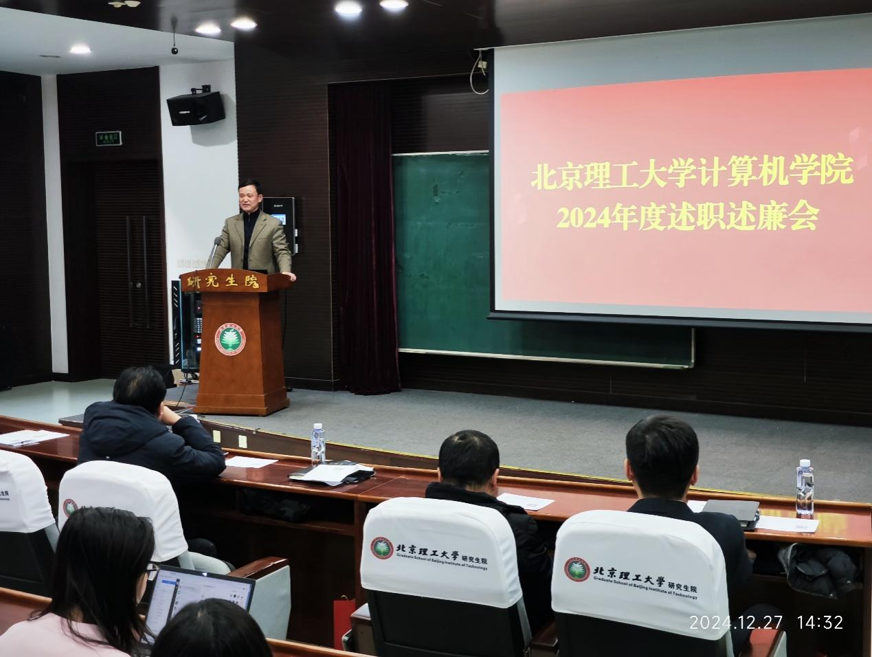 根据学校党委工作部署,12月27日下午,北理工永利集团88304官网在线登录2024年度述职述廉大会在研究生楼101报告厅召开。永利集团88304官网在线登录领导班子、全体教职员工参加会议。会议由学院党委书记周连景主持。