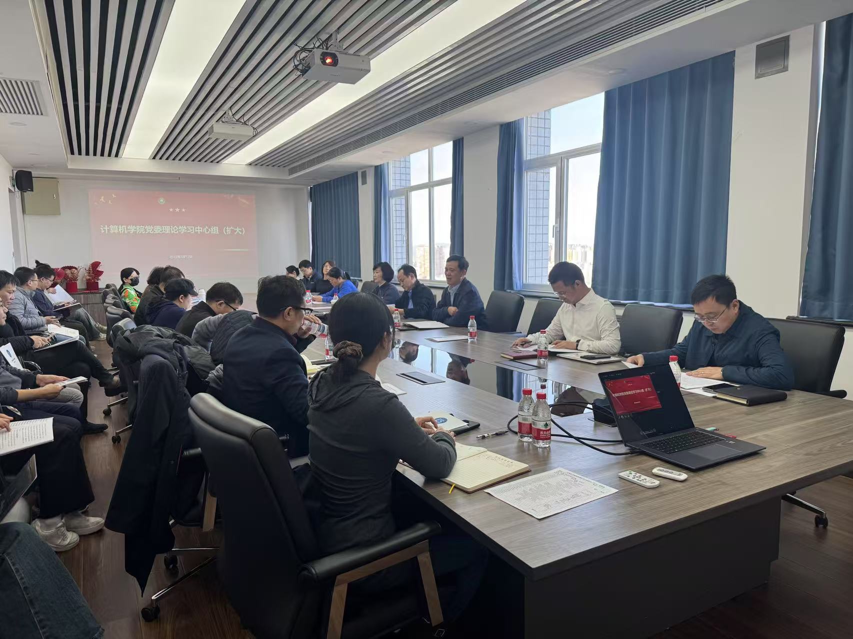 2025年3月12日下午,永利集团88304官网在线登录于中教1421开展理论中心组学习(扩大)两会专题学习教育。永利集团88304官网在线登录院长王国仁、党委书记周连景、党委副书记副院长包成刚、副院长薛静锋、李冬妮、张华平,全体党委委员、教工党支部书记、系所中心负责人、学生辅导员及学生骨干代表共同参会。会议由周连景主持。