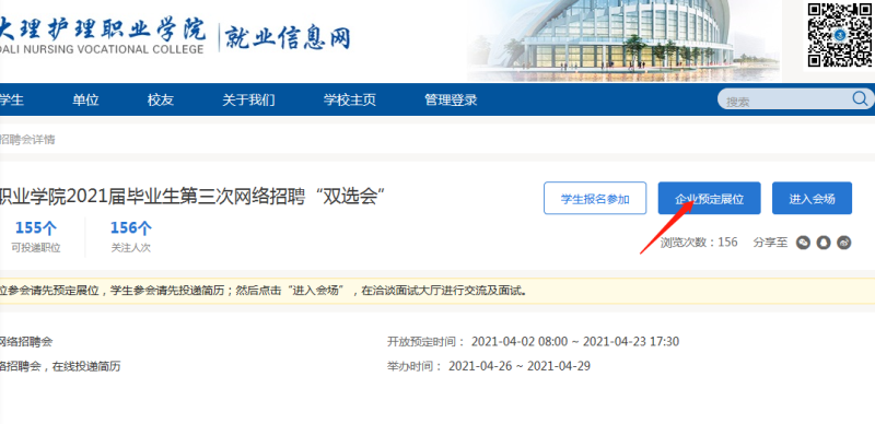 学生点击网址http://dlhlzyxy.jysd.com/进入界面后先注册再登录完成相应信息填写后登录并完成简历后参加线上招聘。
