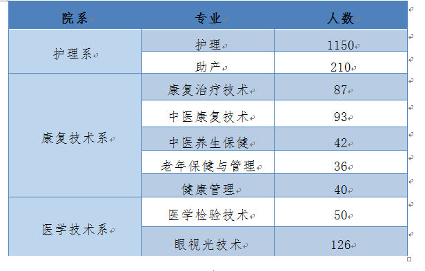 开元2024届有护理、助产、医学检验技术、眼视光技术、健康管理、康复治疗技术、中医康复技术、中医养生保健及老年保健与管理9个专业高职专科毕业生共1834人,具体专业分布如下表: