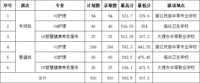 具体录取情况见下表: